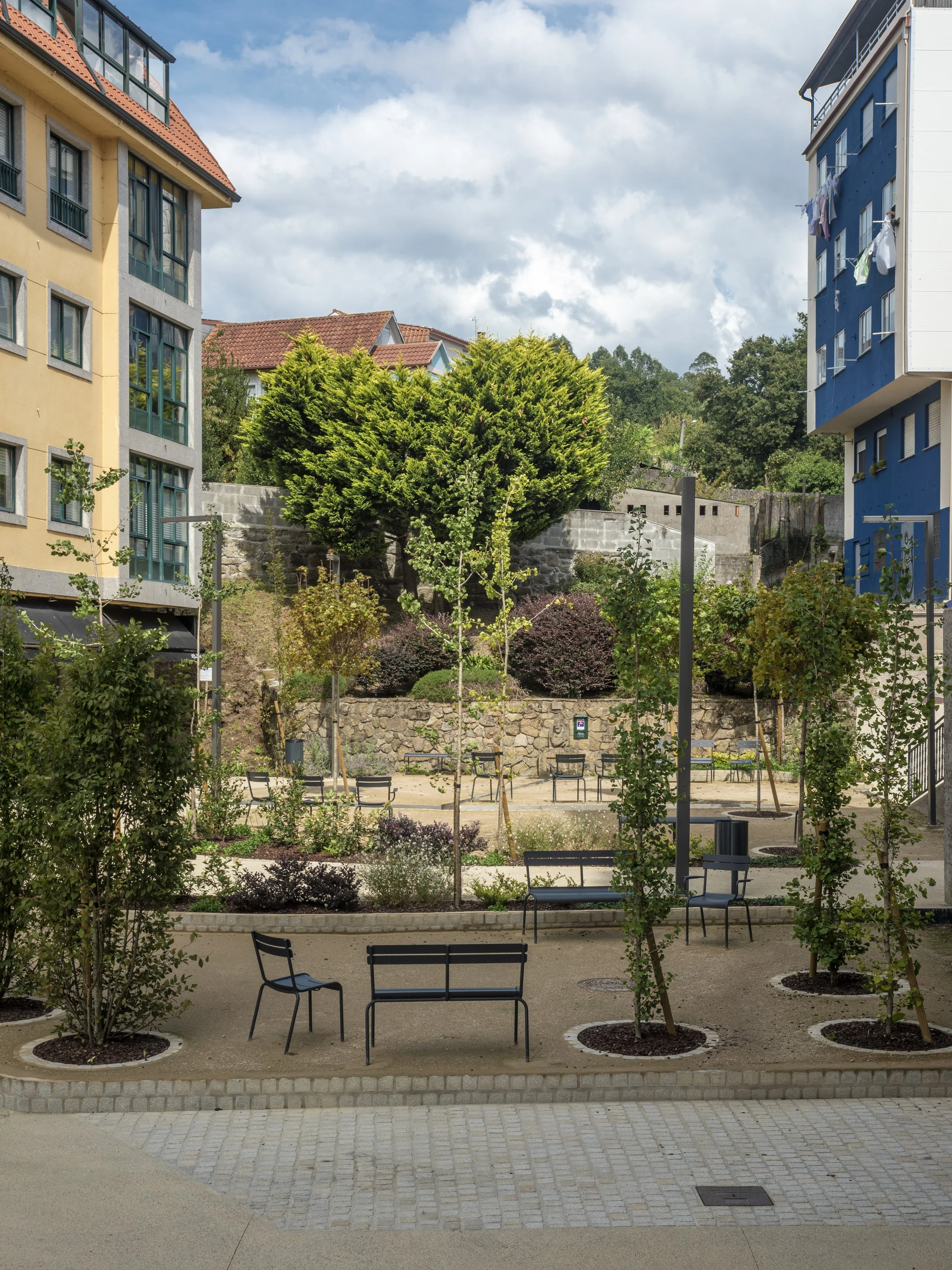 Ahora el barrio de A Picota puede volver a escuchar el agua de su fuente, gestionar a través de sus parterres el agua de lluvia que reverdece el nuevo espacio público. El resultado es un paisaje de agua que silenciosamente mitiga los efectos del cambio climático y entreteje la urbanidad del siglo XXI.